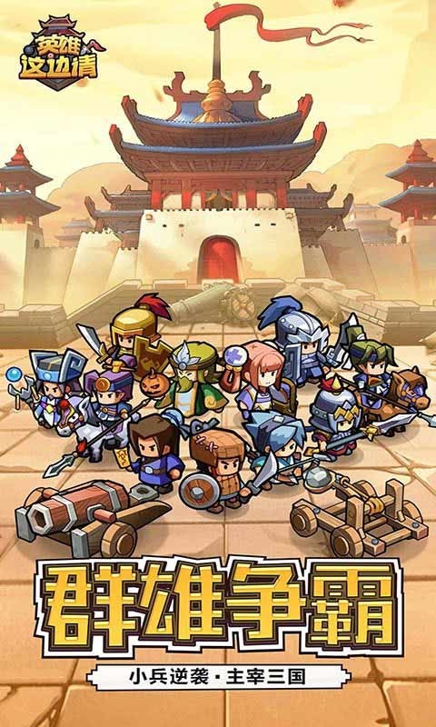 《英雄这边请》游戏以三国争霸为背景,采用Q萌卡通风格,游戏画面十分精美,召唤武将,排兵布阵,攻城掠地。热血江湖,邀请三五好友,携手并进,共创盛世军团,挑战军团副本、角逐国战,一起争霸世界。