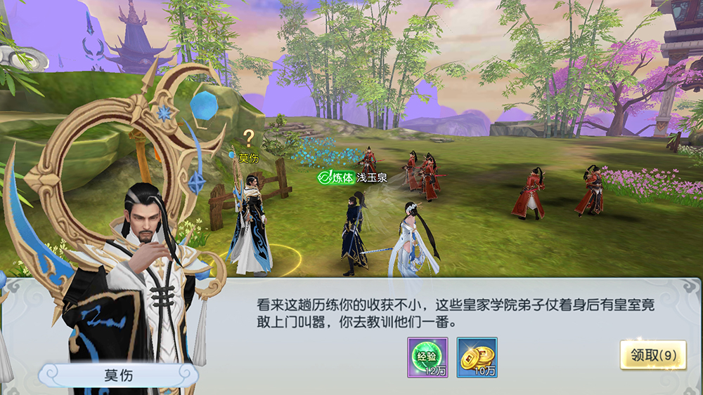 如下面这段剧情,主角在历练之后回到家中,立刻就有宵小上门挑衅。历练后的玩家轻松的将挑衅者及其背后的门派教训了一顿,回来又发现师门有难,而教训完宵小的主人公更强,再次轻易的度过难关,如此循环往复。