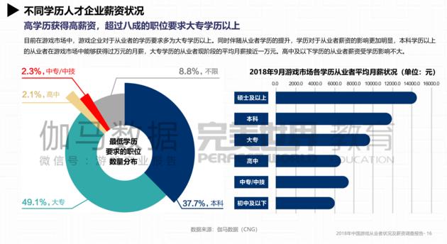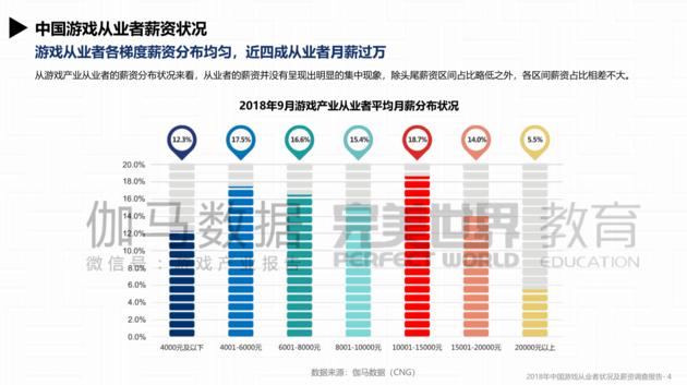 近日,完美世界教育研究院和伽马数据联合发布《2018年中国游戏从业者状况及薪资调查报告》(下简称“报告”),报告显示,近四成中国游戏从业者月薪过万,而二次元游戏人才职位需求量大,薪水也高。