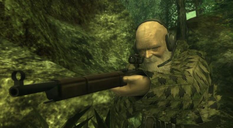 在游戏中,the end 是一名年迈的狙击手,我觉得在 boss 战设计上,可以算是极其优秀的。超巨大的地图,两位狙击手的较量,隐藏自己,找到对手,然后击杀掉对方。而这个 boss 的对战思路多种多样,定向麦克风也好,寻找 the end 的狙击枪的反光也罢,都是很有趣的。