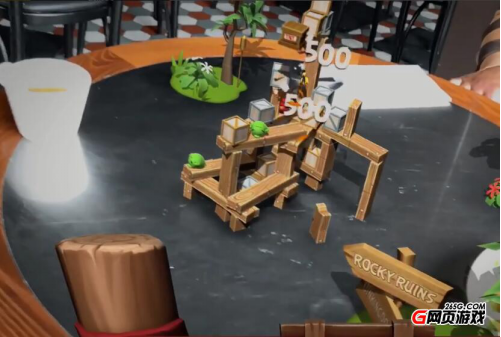 通过宣传视频可见,在AR(增强现实)技术的帮助下,手机摄像头里的桌子立着绿色小猪盘踞的木头建筑。在现实中的你可以绕着桌子走,寻找建筑的弱点,从多个角度弹射红鸟进行攻击。AR版本将原本2D的游戏,带入了3维世界。游戏中的建模精准、画面细腻,游戏元素并没有因为手机的移动而产生偏移,游戏效果令人满意。