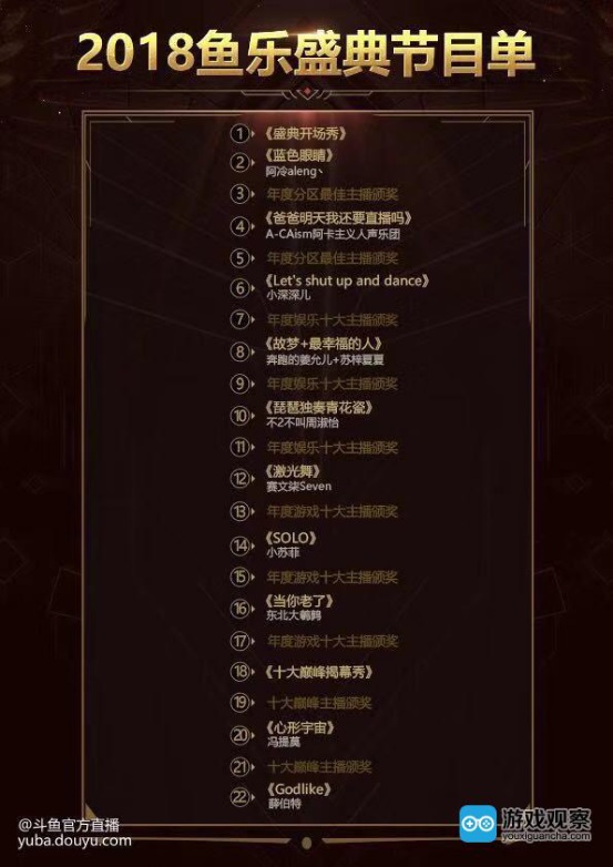 根据斗鱼的节目单显示,当天盛典以全部为演唱类节目,除了年度游戏十大主播颁奖以外,丝毫看不出斗鱼是游戏直播平台。纵观斗鱼这一年的发展之路,可以看出其“身在曹营心在汉”的发展态势,自从老对手虎牙以“游戏直播第一股”的身份成功上市后,斗鱼开始逐步增加泛娱乐布局减少游戏直播的投入。斗鱼自2017年底就宣布将IPO,2018年6月,《南华早报》报道,知情人士透露,斗鱼计划第三季度在香港IPO,融资总额高达7亿美元;7月,英国《金融时报》报道称斗鱼直播计划赴美IPO,拟筹资6~7亿美元。至今没有确切的消息,历时接近1年,辗转两地,尚未开花结果。