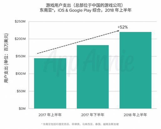 可以说,在MOBA、“吃鸡”这两类大DAU重度手游的持续培养之下,东南亚市场的手游用户质量也得到了极大的提升。App Annie数据显示,从 2017 年上半年到今年上半年,来自中国的游戏在东南亚iOS和Google Play商店的下载量增长了50%,超过了3亿次。更重要的是,东南亚市场用户支出增长了惊人的 52%,超过了2亿美元。