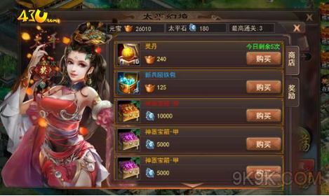 太平幻境与精英挑战会产出太平石、灵丹、仙草及陨铁,太平石可在太平商店中 购买各类珍稀道具。