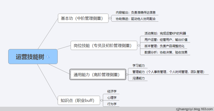 这些职业技能贯穿运营的整个职业生涯,在不同的时期侧重点不同: