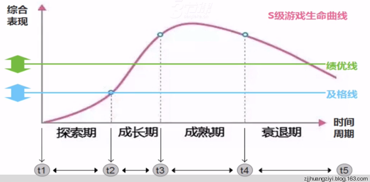 (2)在t2~t3成长期应该冲过绩优线,并稳稳度过成熟期。