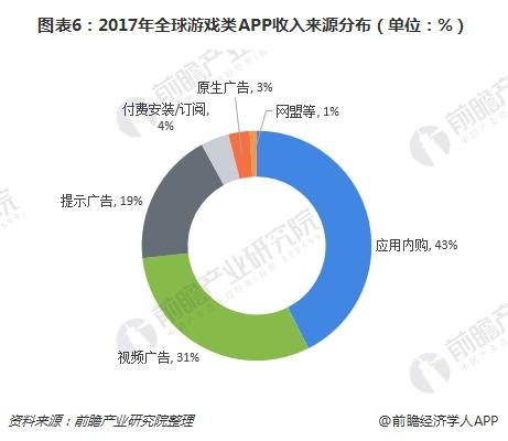 从收入来源看,游戏类APP营收主要来自于广告,原生广告、提示广告及视频广告合计占到53%;其次是应用内购,占比同样较大,约为43%。