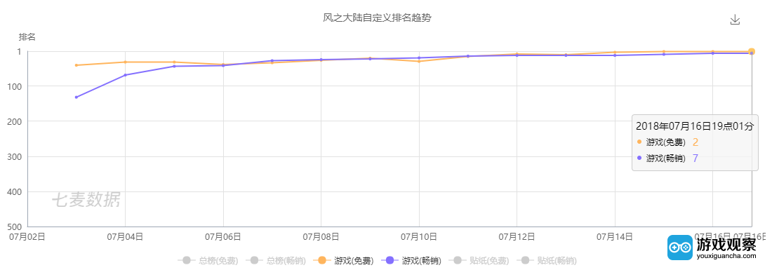 按近期的市场规律判断,这种没有在上线初期就获得大量新用户流入的MMO产品,前景也应该不太乐观。但《风之大陆》接下来的表现狠狠地抽了笔者的脸,它在榜单上稳步爬升。截至发稿前,去到了游戏免费榜Top2、畅销榜Top7的位置。