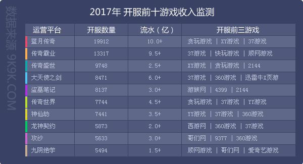事实上,根据9K9K网页游戏数据中心的统计来看,传奇类的页游依然十分吸金,老牌的《传奇霸业》,新生的《蓝月传奇》、《传奇世界》等都是其IP代表作。那些在移动时代受到关注的页游,类型通常也都是“传奇”的化身。
