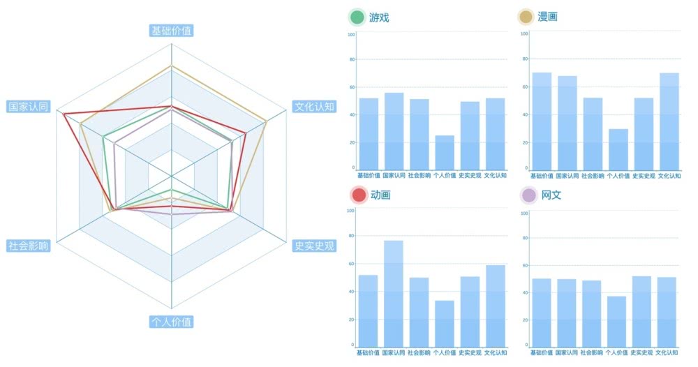 同时,《报告》显示,相比之下“个人价值”的分值成为各领域的“谷底”。比如,漫画领域的“基础价值”“文化认知”都有较好表现,但因“个人价值”评价不高拉低了总体表现。