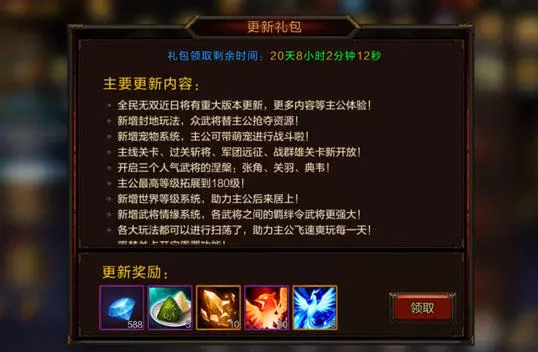 免费礼包内含经验、金币、体力、培养道具等常用资源,使用户一回流就“有事可做”。
