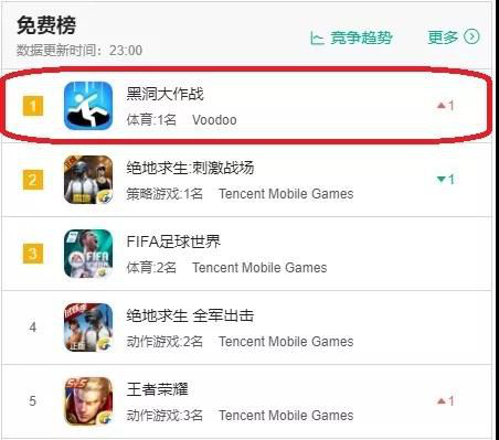 (去年 6.18 日游戏免费榜排名)