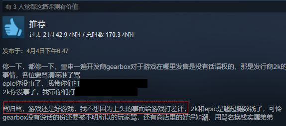 反观前段时间宣布Epic独占半年的《无主之地3》,情形就惨烈得多: