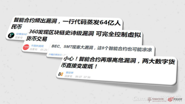 同时还有智能合约,区块链里,合同是通过代码的形式存在的。区块链的特性使得区块链变得十分可靠,但我们去搜区块链时,依旧会发现许多标题“一行代码蒸发64亿人民币”、“史诗级漏洞”、“重大漏洞”等字眼。