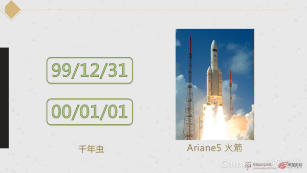 第二个故事也是上个世纪的故事,阿丽亚纳5号火箭升空不到40秒偏航自毁,事后追查原因是因为重用4型火箭的代码,然而该代码在计算时承载不了5型火箭产生溢出导致解体爆炸,火箭上载有通信卫星,造成了几亿美金的损失。