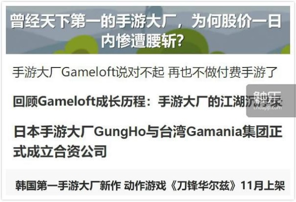 在这段时间里,被称为“手游大厂”的公司基本都专攻手游,它们的成名作往往发售在移动平台。Rovio的《愤怒的小鸟》可以说是现象级的,但人们对这家公司的认识也仅限于《愤怒的小鸟》;宝开的成功同样有点昙花一现的意思,在被EA收购后开发的游戏有些不温不火。或许与传统游戏行业最有关联的公司便是Gameloft了,在血缘上它与育碧有着千丝万缕的联系。