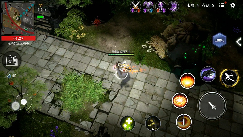 当地形高度成为策略的关键要素后,游戏相应加入了跳树和沙盒拟态技能。如果周围没有较高的地形或者建筑,玩家可以通过跳到树上,或者短暂地变成一只鸟,以获取更大范围的视野,从而转移或者偷袭其他玩家。