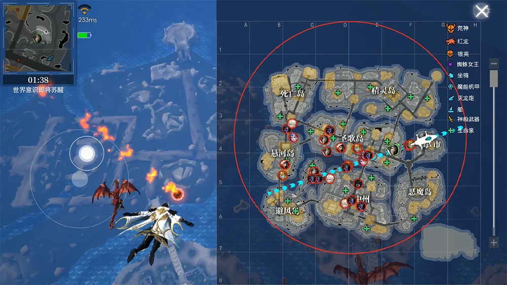 同时,游戏还提供了类型丰富的位移方式。玩家在陆地上可通过骑马或者骑龙实现更高效的位移,在水面上则可以通过搭乘小船或者变形成海怪。