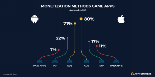简单来说,移动应用变现就是将自己的 App 变为一个高效的收入来源。而安卓和 iOS 因为在移动端操作系统的市场份额占了 97%,被开发者视作 App 发布和变现的首选平台,但这两个平台在应用内广告(IAA)、应用内购(IAP)、和付费下载三种商业化模式上的表现不同,开发者在选择发布平台时或决定以哪个平台为重时,应结合 App 自身的商业模式以及平台的不同特征做出合理决策。