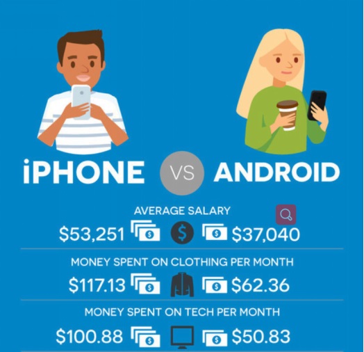 Slickdeals 近期分别对 1000 名 iPhone 用户和 1000 名安卓用户进行调研后发现,iPhone 用户的平均年薪要高于安卓用户且付费意愿和能力也都高于后者。