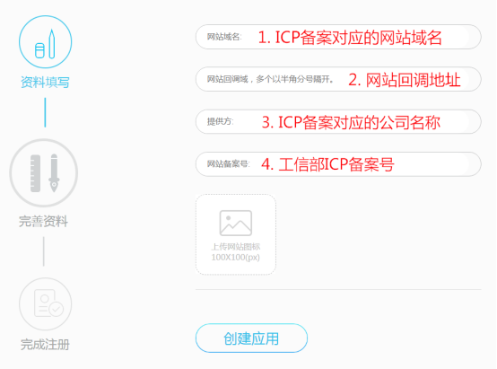 点击创建网站应用后,按要求完善信息: