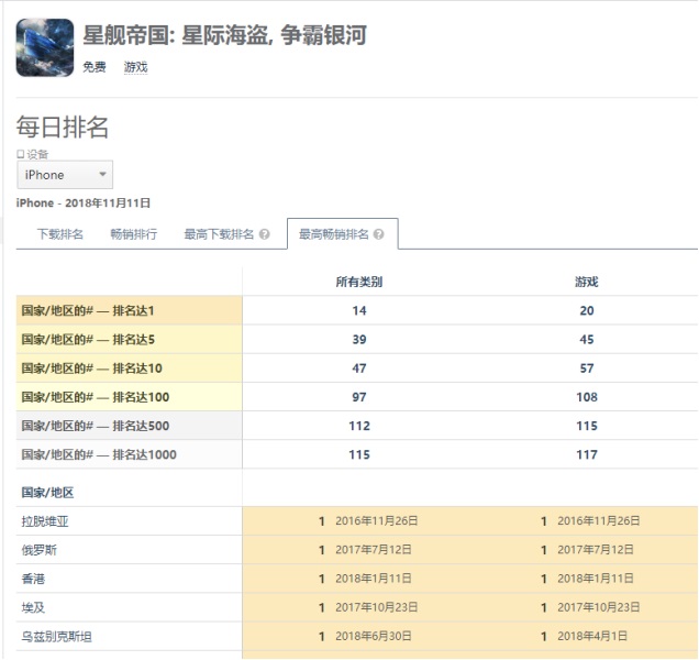App Annie数据显示,《星舰帝国》在海外市场也曾拿下最多在俄罗斯、香港、澳门等20个地区的App Store游戏畅销榜拿下TOP1,不过这大多已经是前两年的榜单记录了。近期,《星舰帝国》开始在部分市场有所回升,包括在新加披、比利时、意大利、中国、俄罗斯等市场均进入到iOS畅销榜TOP100,只是其中韩国市场的爆发尤为明显。