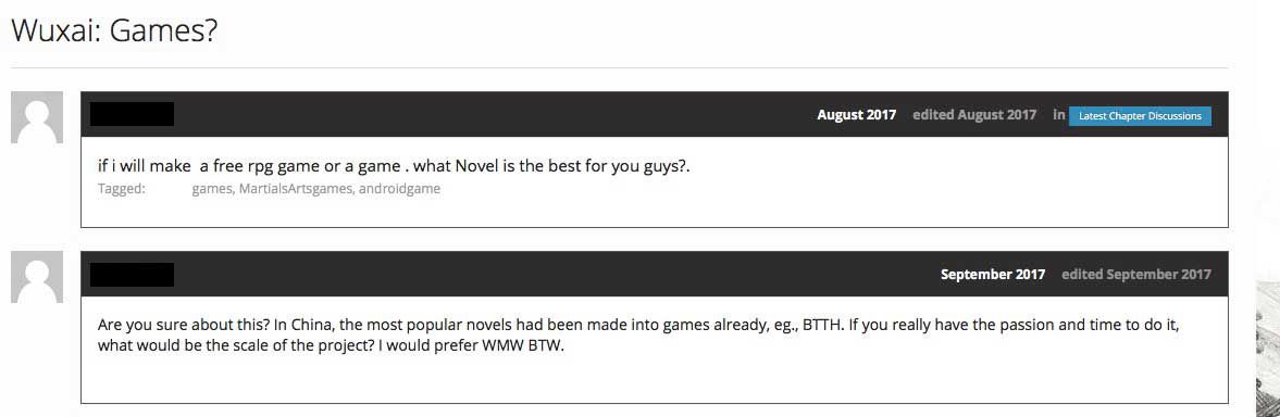 发表在 Wuxiaworld 论坛的帖子