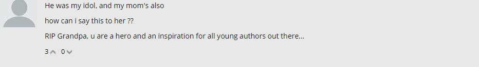 他是我的偶像,同时也是我妈妈的偶像,我该如何告诉她这个难过的消息??RIP,你是所有年轻一代作者的英雄和榜样。
