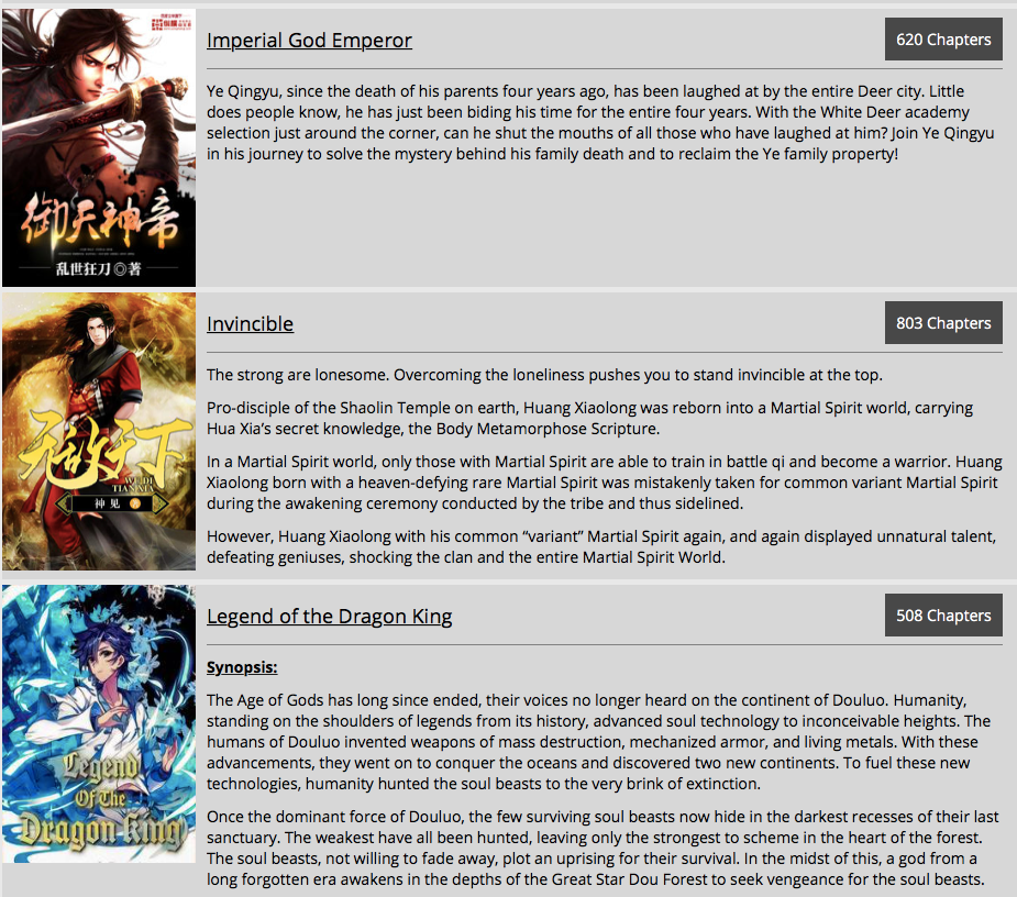 Wuxiaworld 网站上翻译的小说