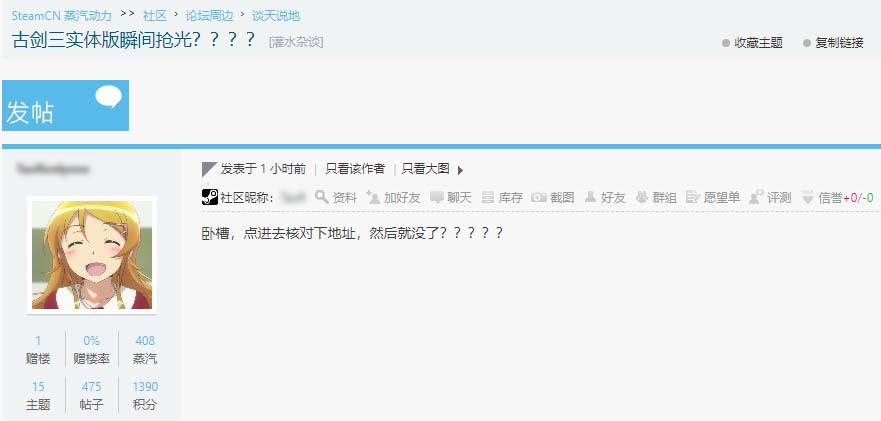 结合典藏版售罄背后各大论坛玩家发帖,也能够发现玩家购买力还远未被释放。这一点显然玩家本身也比较懵,不清楚一款国产单机游戏,怎么能卖出手机的感觉。因此也不乏有玩家怀疑饥饿营销,不过从部分玩家反映是在纠结收货地址时产品才售罄,证明没有利用脚本瞬间扫货的嫌疑,购买者基本可以认为都是活生生的玩家而非黄牛。