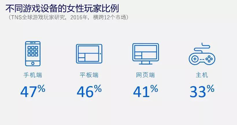 这项研究显示,移动端是男女玩家比例最为平均的游戏设备,也是进军女性市场时最需要重视的平台。