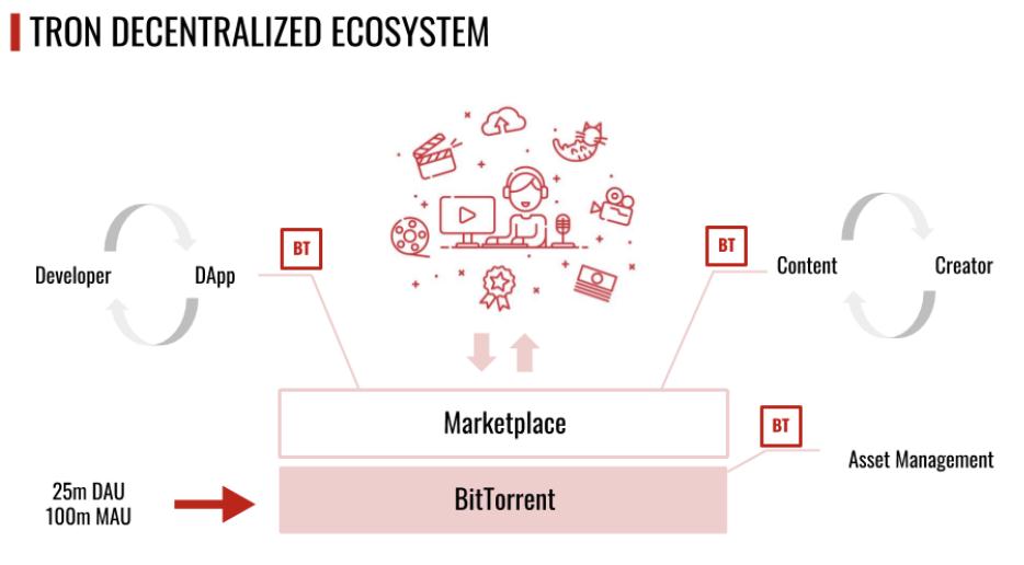 值得注意的是,波场(TRON)创始人兼CEO孙宇晨于今年6月成功收购全球最大的去中心化的下载工具公司BitTorrent (BT)。很多人知道BitTorrent,,但很多人不知道这个互联网主要的文件传输协议拥有10亿以上用户,其使用量曾一度占互联网全球文件传输量的30%以上,使用者中不乏企业级用户如Facebook,Dropbox, Blizzard等。而孙宇晨此次收购的BT不但承担了该协议的日常维护,同时还拥有BitTorrent及uTorrent两大主流下载客户端。据悉,这两个客户端的日活已达到2500万以上,而月活更达到1亿以上,更有持续增长趋势。近日,孙宇晨也宣布了会对BT进行币改,内部把该项目命名为Project Atlas。一旦币改完成,波场(TRON)将拥有全球最大的去中心化应用及其他使用场景的流量入口。