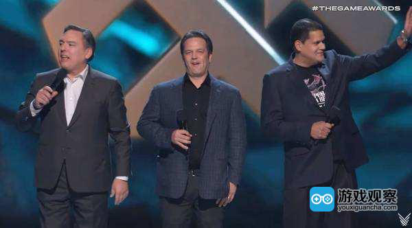 今年的TGA2018颁奖典礼上有一个非常经典的历史性时刻,那就是索尼、微软、任天堂的三位高管齐聚一堂同时登台。这三人就是微软XBOX负责人菲尔·斯宾塞,任天堂北美总裁雷吉和索尼SIE全球工作室负责人肖恩·雷顿。