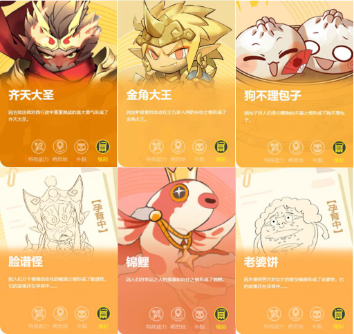 比如,《西游记》里妇孺皆知的齐天大圣、金角大王等经典角色都是妖灵中的一员;而貂宝、小兵俑、舞狮等妖灵,从名字来看就有浓浓的地域气息;让人意外的是,大闸蟹、狗不理包子、小龙虾为代表的“吃货最爱”,也以妖灵的形式出现在游戏中。
