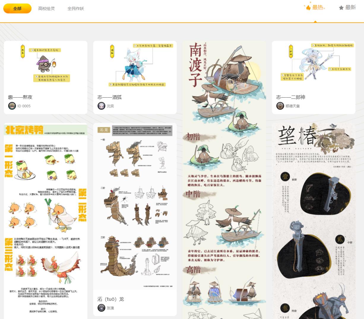 除此之外,该游戏还专门上线了万物有灵概念站,除了帮助玩家了解四大类妖灵之外,还增加了“众生创灵”机制。在网站的展示页面,既有面向高校学生的“高校绘灵”,还有面向所有人的“全民作妖”,无论你是懂设计的大触,还是热爱游戏的小白,都可以通过邮箱投稿的方式提交自己的作品,一旦入选,还有可能被正式加入游戏当中。