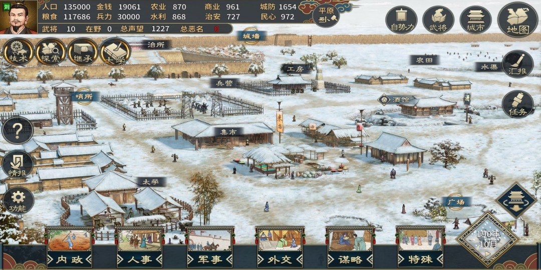 玩家可以靠游戏内的各项功能,很完整地体验到游戏的全部内容,而且阶段性的目标获取也不是很难。该作有很高的内容深度,上至城池发展、外交策略,中至武将的管理与培养,下至调兵、打造装备等均是重玩性较高的内容。