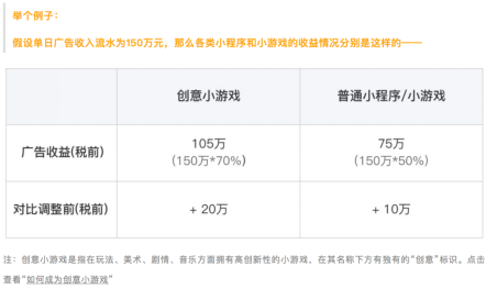 举个例子,假设单日广告收入为250万元,那么新方案实施后各类小程序和小游戏的收益情况如下图
