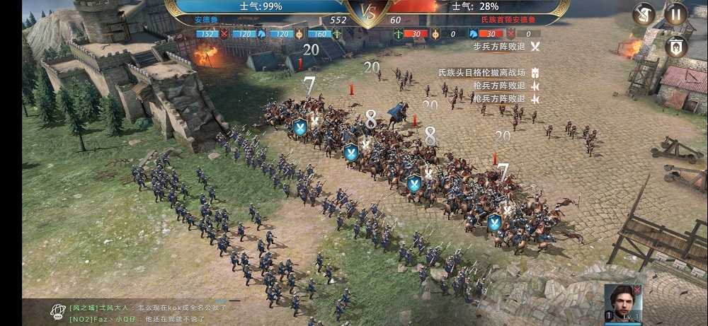 战斗表现方面,《凛冬将至》能容纳最多240人同屏战斗,这让中世纪大规模交战的场景,有了很直观的表现。战斗系统中一个重要元素是指挥官技能,这些技能的光影、粒子效果也都很有分量,但大量单位同屏战斗的时候依然能保持流畅。除了指挥官会把绝招的名字喊出来稍显出戏,战场沉浸感的塑造有不错的观感。