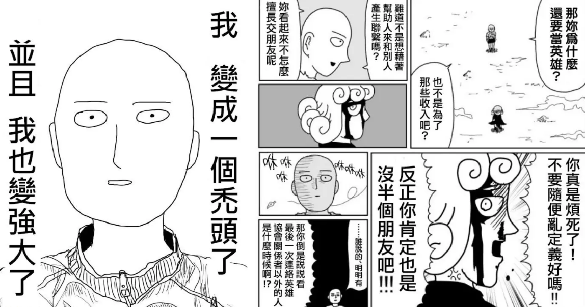 《一拳超人》是ONE原作的漫画,最早的时候,它只是ONE在个人网站上发布的练笔作,画风简单的让人觉得过于随意,大概就是这样: