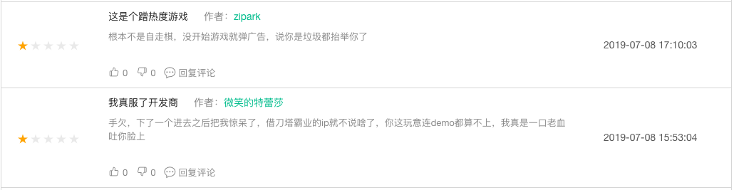 今年年初,一款名为《众神领域 : 三界自走棋》的手游上线,该游戏从玩法机制、界面操作等各维度均抄袭了《刀塔自走棋》,且完成山寨的用时不到1个月。而这款游戏也得到了TapTap玩家的“特殊关照”,直接被喷到了下架。尽管近期游戏做了一次大的调整回归TapTap,但至今评分仍仅有2.3分。