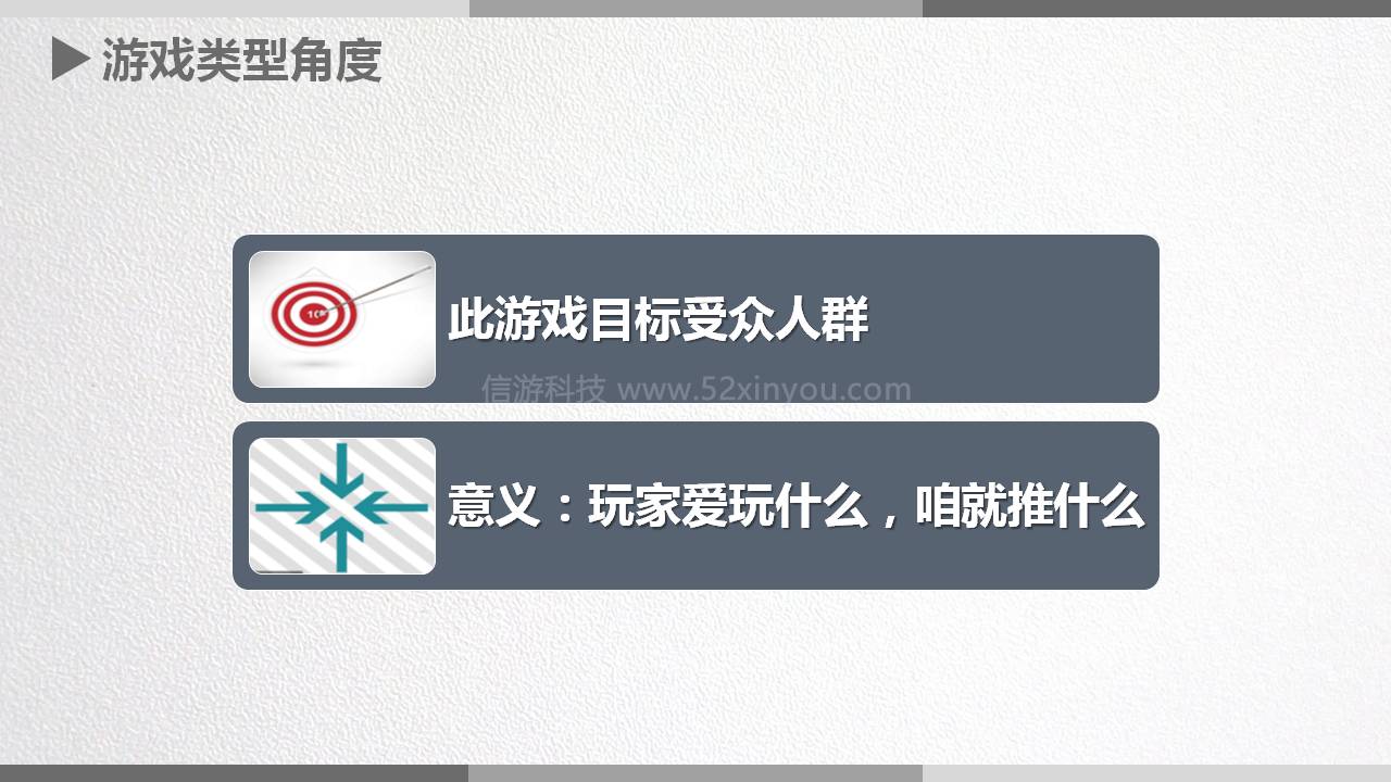 分析此游戏的目标受众人群,就是玩家爱玩什么我们就推广什么,分析结果都爱玩策略类的,咱们就多代理些策略类游戏,玩家都爱玩手游就多代理些手游,并不是什么游戏火就代理什么,要根据自己推广来的玩家正确分析选择他们爱玩的游戏,如果都是学生,时间比较充足就爱玩重度些的游戏,上班族时间零散就比较爱玩轻量些的游戏,一定要分析好,玩家爱玩什么游戏咱们就代理什么游戏。