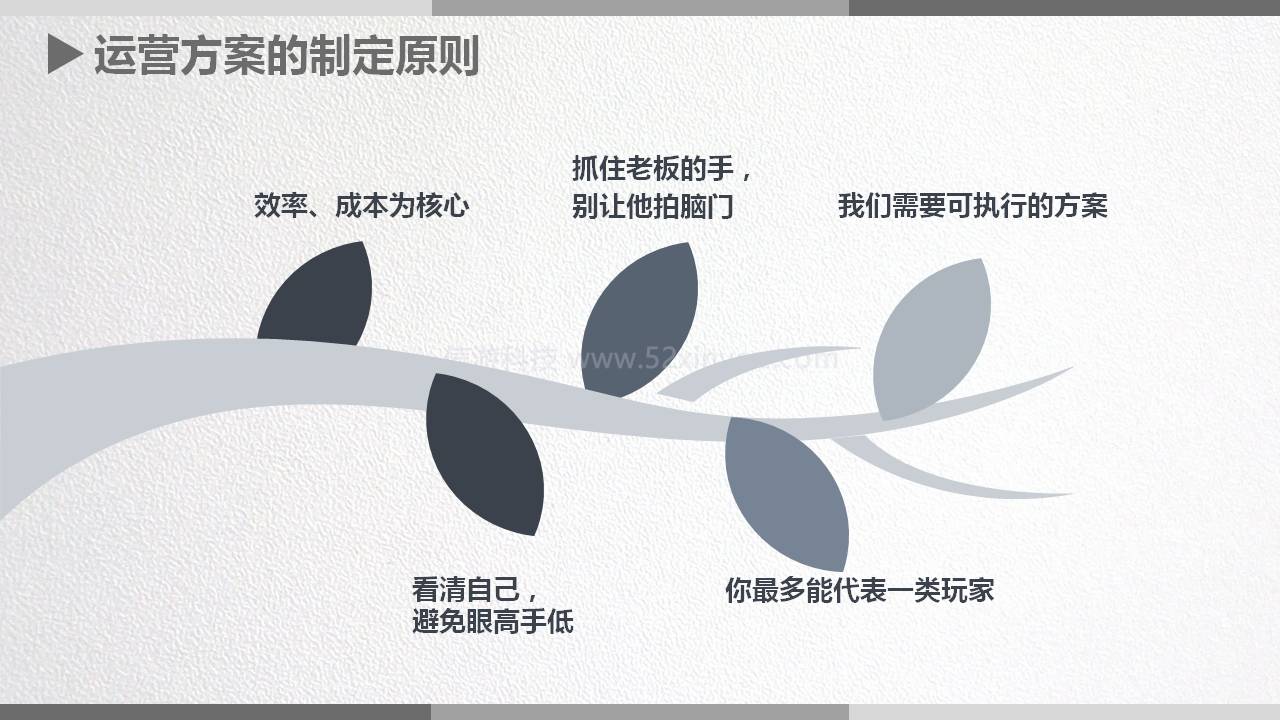 第一点:效率,成本为核心,就是你做的方案一定要高效低成本,如何高效呢?比如说去一个群或者公会里面拉人,平台的10个人都去拉人,和一个人去直接找这个群的会长,谈成他一个人他这个公会的人都是你的,这就是效率。 成本也是一样的道理,10个人去拉10个玩家,工资就发出去不少,所以能节省的一定要节省。比如你做这事可能效果很不错,但是成本很高,效率很低,那我们要选一个最高效成本最低的,根据团队的情况来选,哪一种方式对于团队来说效率最高成本最低就选择哪一种。